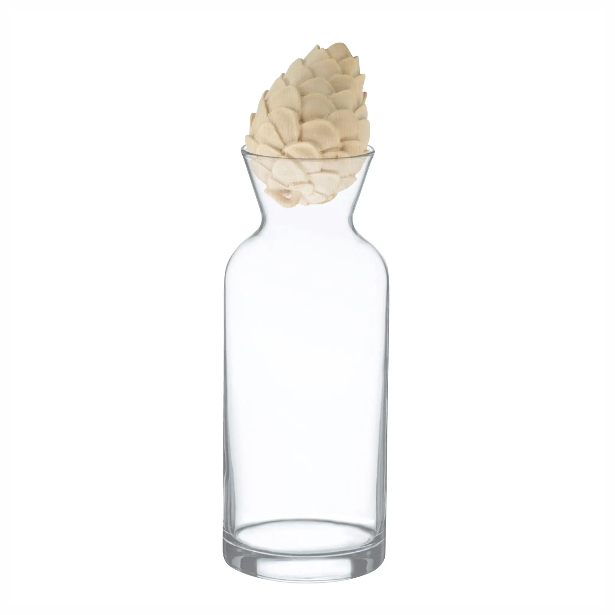 Genieße natürlich aromatisiertes Wasser nur durch Auflegen des handgeschnitzten Zirbenholzzapfens!