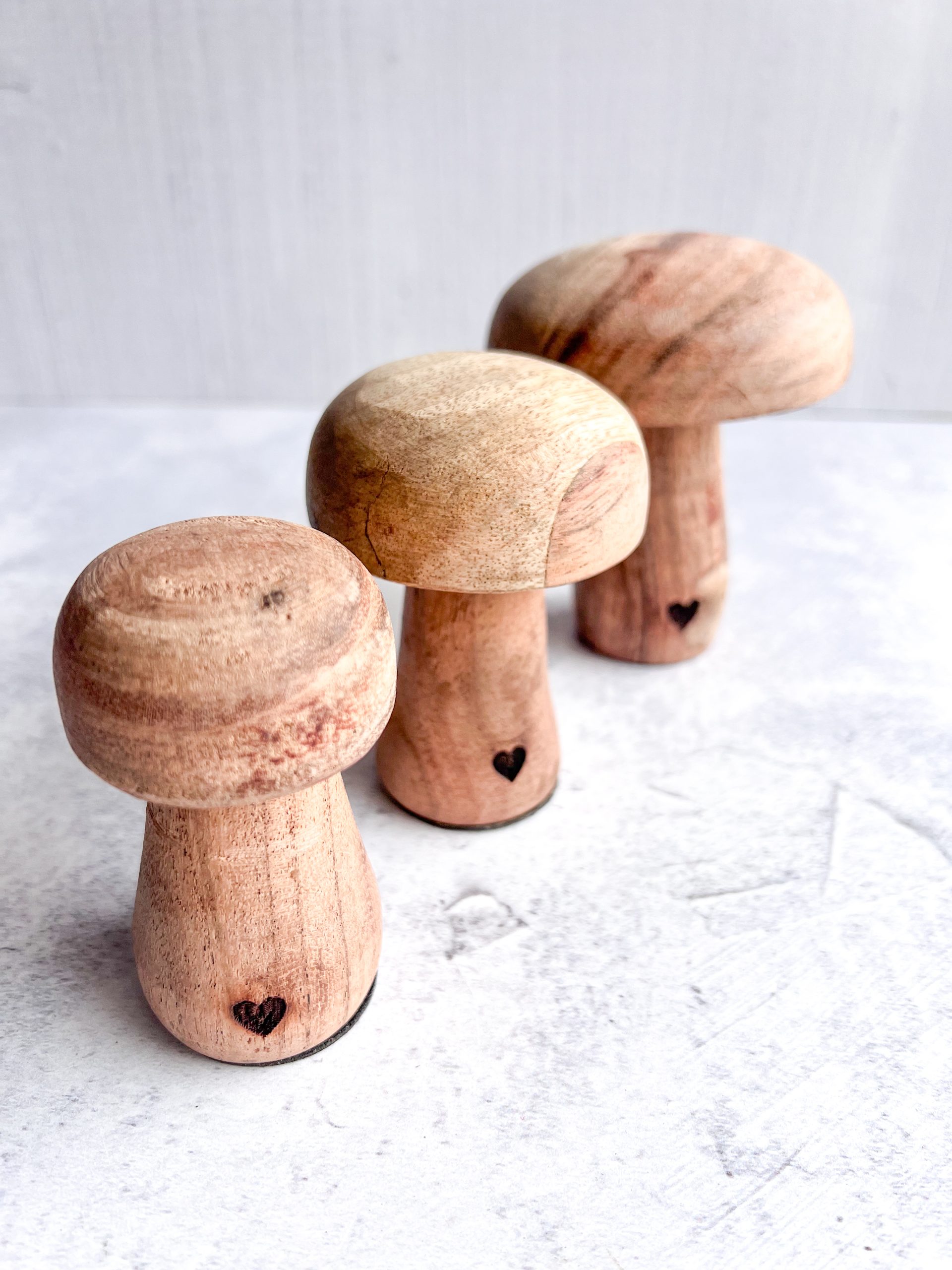 Der Mix macht’s! Farblich schön aufeinander abgestimmtes 3 er Set süßer Holz-Pilze.
