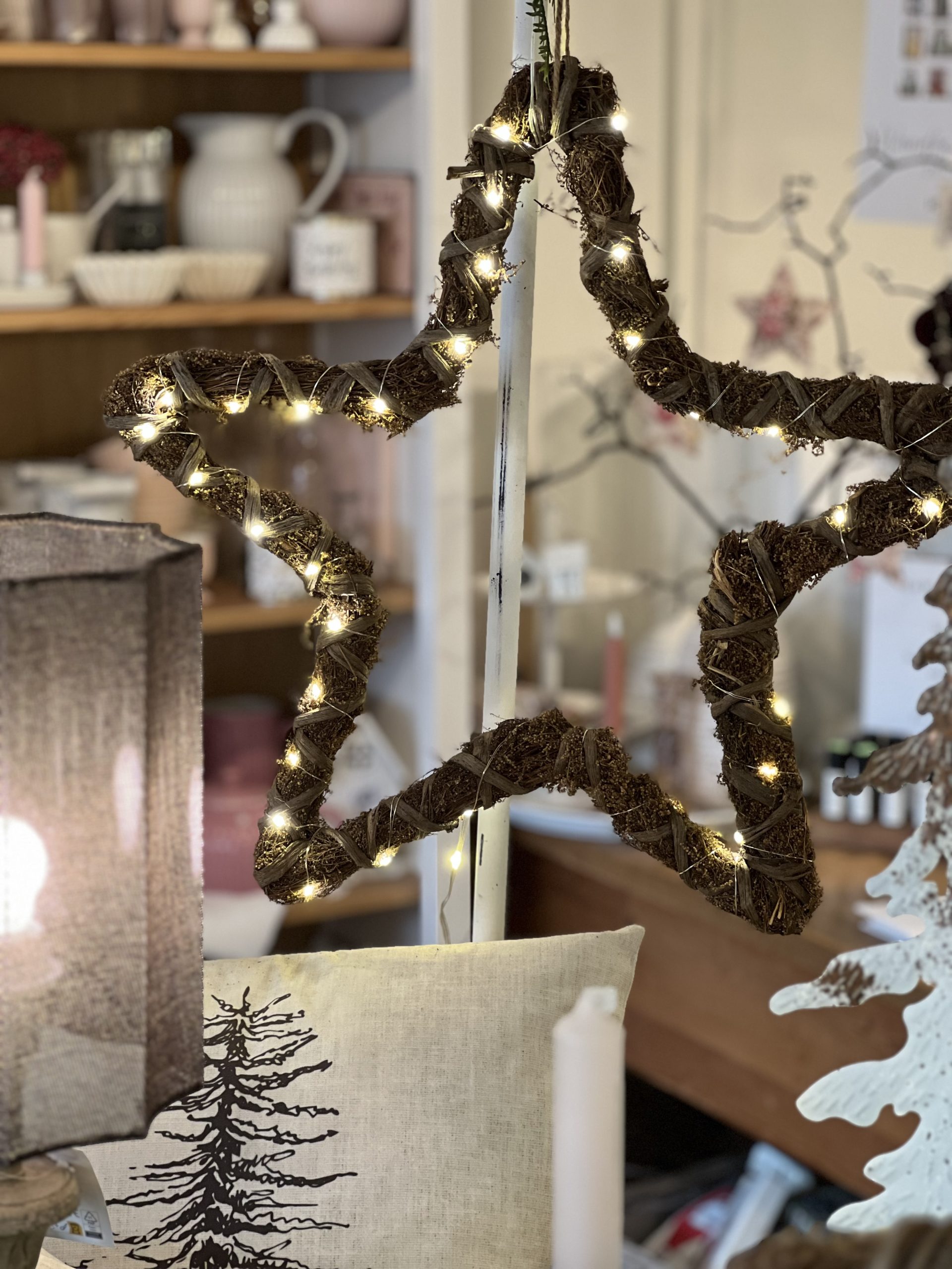 Imposanter Stern aus Naturmatrialien geflochten und Led.Minikette umwickelt